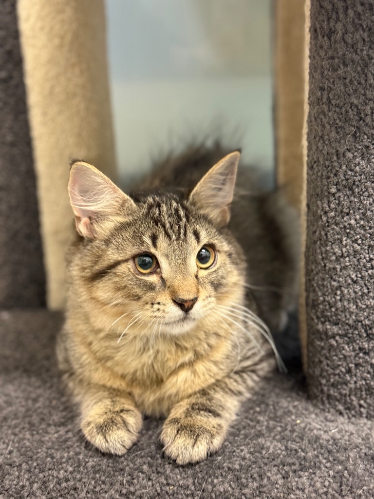 Tiger was found all by himself in a paddock on boxing day, he arrived quite unwell and has been in foster care learning home life and recovering, he is now ready to find his people. Tiger is a real snugglepuss, he loves to flop onto your lap, purring loudly while making biscuits even when you are on the toilet (if he gets in while you are there!) He is very affectionate, confident and social but does not like small children and retreats to a safe place when they are around. Tiger plays with all types of toys with balls being his favourite toy. He is great with other cats and untested around dogs. Come and meet him at our Longford Centre.