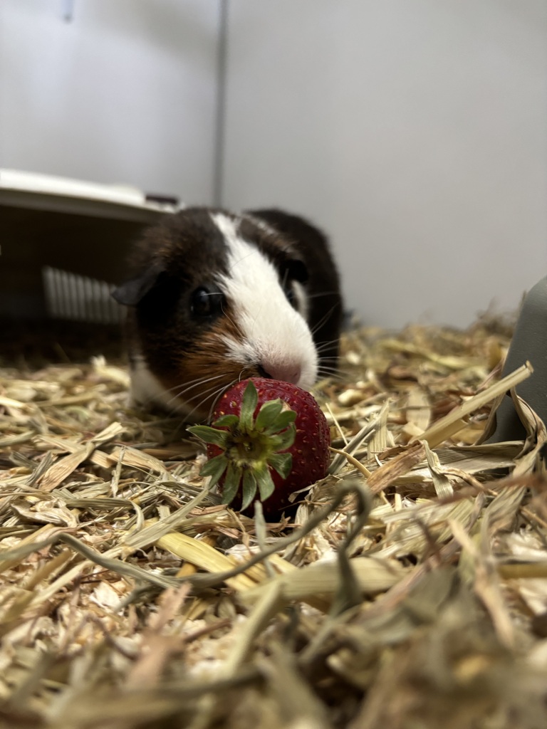 Hello there, I'm Calypso! Life here in the shelter is safe and warm, but I dream of a home where I can truly flourish. I love munching on crunchy carrots, exploring new mazes, and snuggling into a cozy blanket for a nap. I'm an expert at wheeking for treats, and I promise to serenade you with my chirps and purrs. I'm quite the social butterfly, always eager to greet my human friends. While I appreciate the care I receive here, I yearn for a family of my own. Adopt me, and I'll fill your home with joy and laughter. I may be small, but I have a huge heart ready to love you!