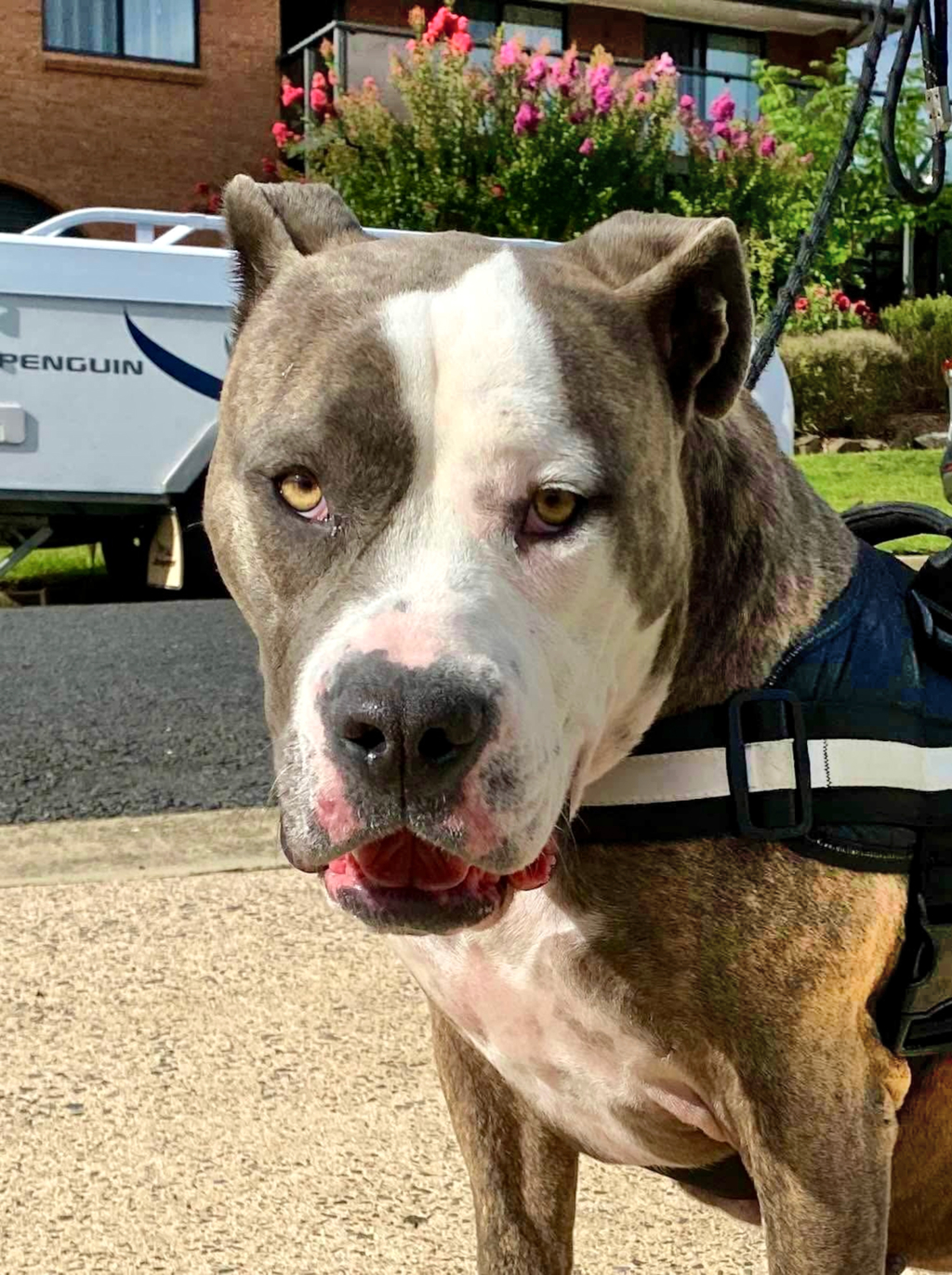 Rubiks is a 2.5 yo Blue brindle American Staffordshire x Mastiff.