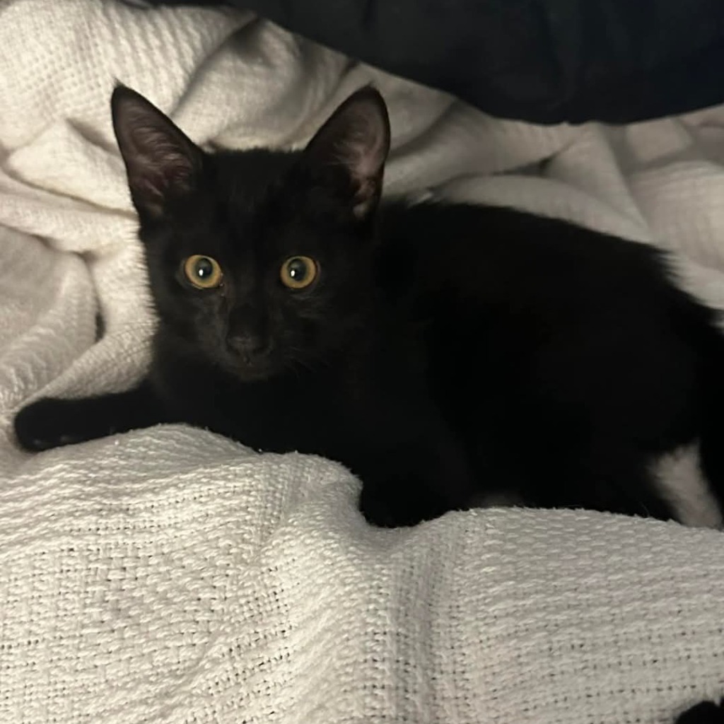 Meet Pantha! This handsome little foodie has a purr as big as his heart. Pantha loves nothing more than a cozy cuddle and can often be found snuggled up on your bed, ready for some love. He’s a friendly guy who enjoys the company of other cats, though he’s still a bit unsure about dogs — especially the bigger ones! With his sweet nature and love for affection (and snacks!), Pantha is ready to find his purr-fect home.