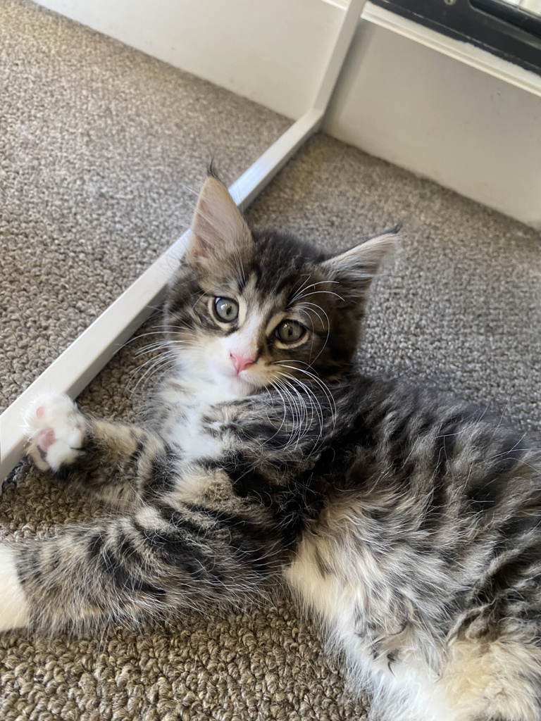 Polly is a sweet, cuddly kitten with a personality as vibrant as her fluffy coat. If you're looking for a playful companion to brighten your home, Polly is the one for you! She loves to play, especially with other cats, and will happily spend hours chasing toys or engaging in friendly wrestling matches. Her playful spirit is matched only by her affectionate side-she loves cuddling and purring her way into your lap for some snuggles.