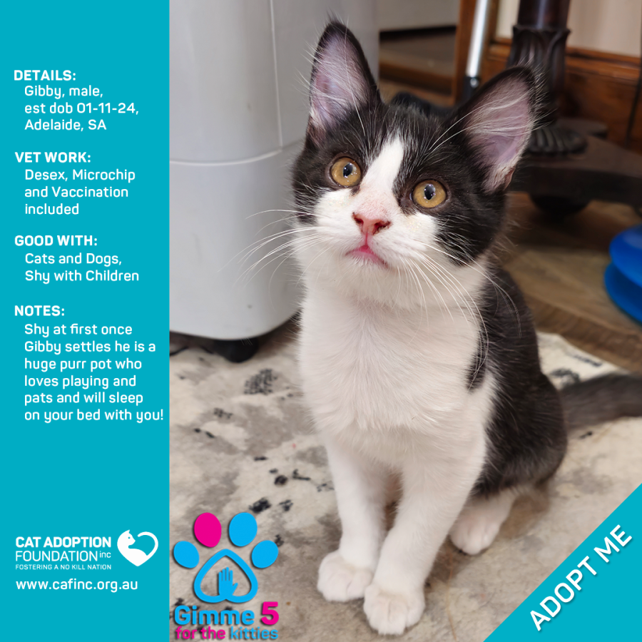 Donate to Gibby at Cat Adoption Foundation Incorporated via Shout