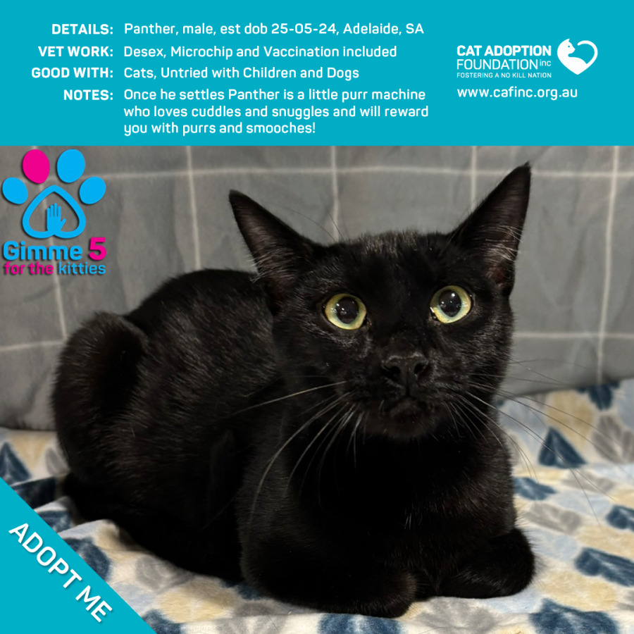 Donate to Panther Only $50 Limited Time! at Cat Adoption Foundation Incorporated via Shout