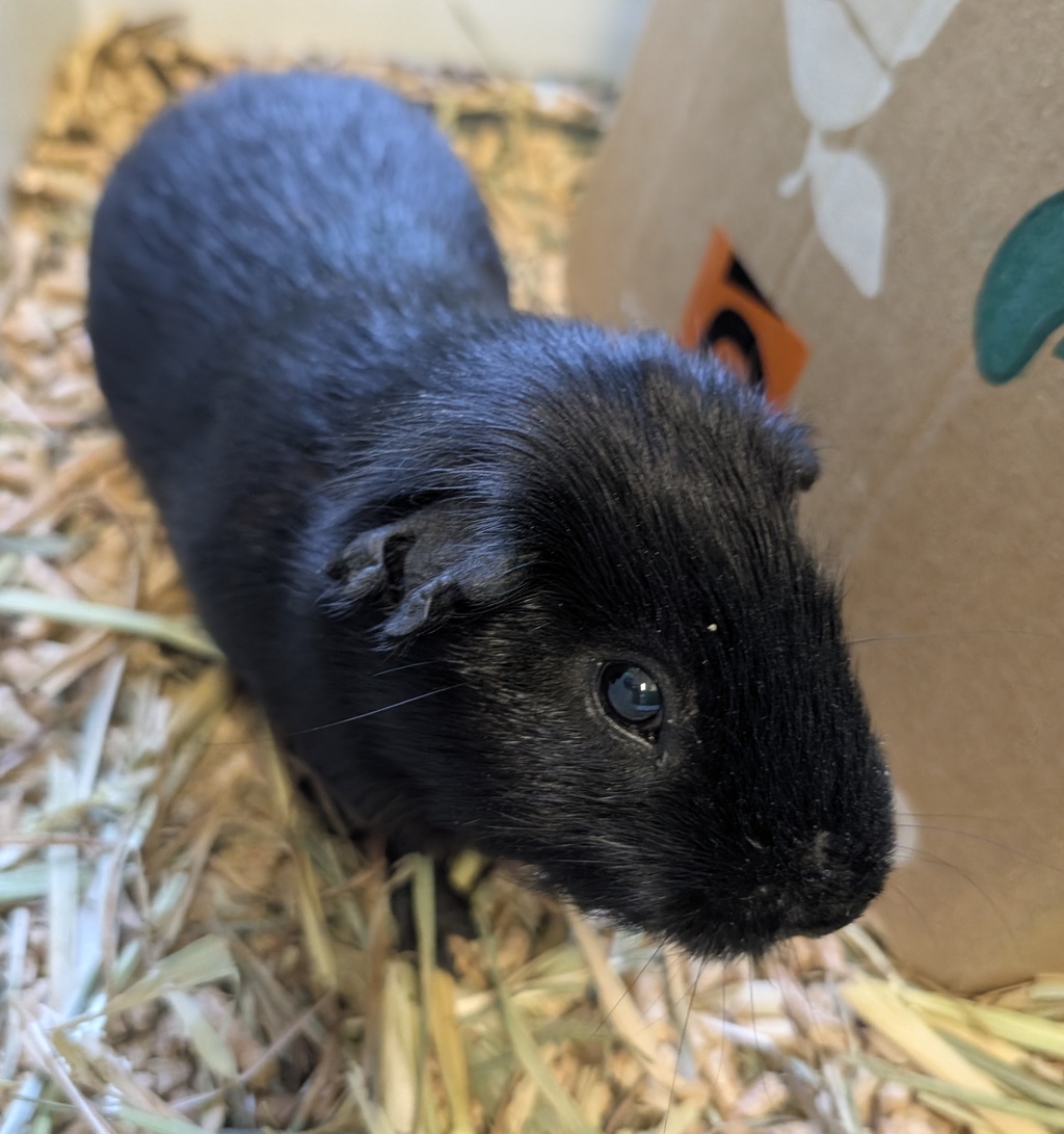 Ahoy there! I'm Blackbeard, the most adventurous guinea pig you'll ever meet. I may not sail the seven seas, but I sure do love exploring my surroundings. Give me a maze of tunnels, and I'll navigate it like the true pirate I am. I'm a social creature, I love to chirp and purr in delight when I'm around my human friends. I'm also a big fan of snacks, especially fresh veggies. They're my treasure! I'm looking for a forever home where I can share my adventurous spirit and companionship. Adopt me, and together we'll conquer the world of play and cuddles!