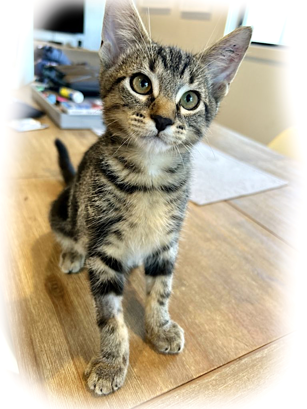Tiger is a beautiful little boy who loves cuddles and demands them regularly. He bonds very well with other animals and children, is very affectionate and follows you around the house.