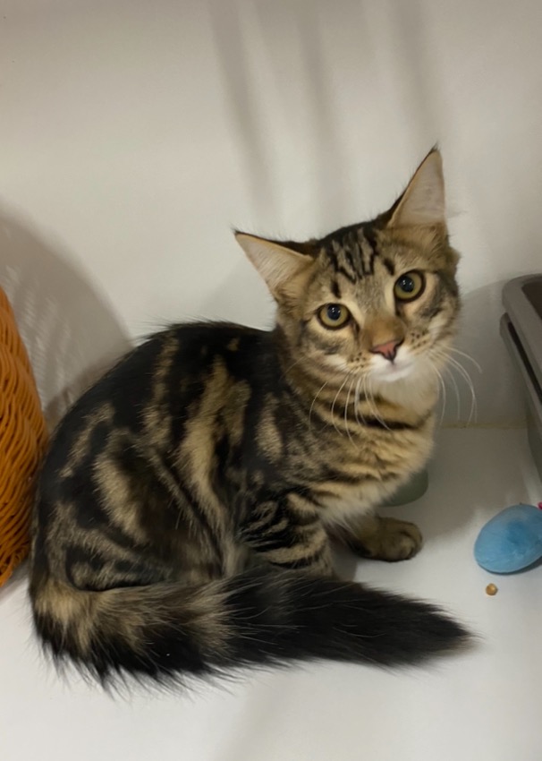 Derringer arrived alongside his siblings as strays from Deloraine, a little unsure of the world they entered foster care and have thrived in home life. Derringer loves to play with the wand toy, he enjoys climbing the scratching post and sitting in the window sill watching the garden. He enjoys a cuddle and purrs very loudly, Derringer is a chatty boy who loves to play by himself as well as with his siblings or people. He is great with other cats, untested around dogs and kids but with a slow introduction should be ok. Come and meet him at our Longford Centre.