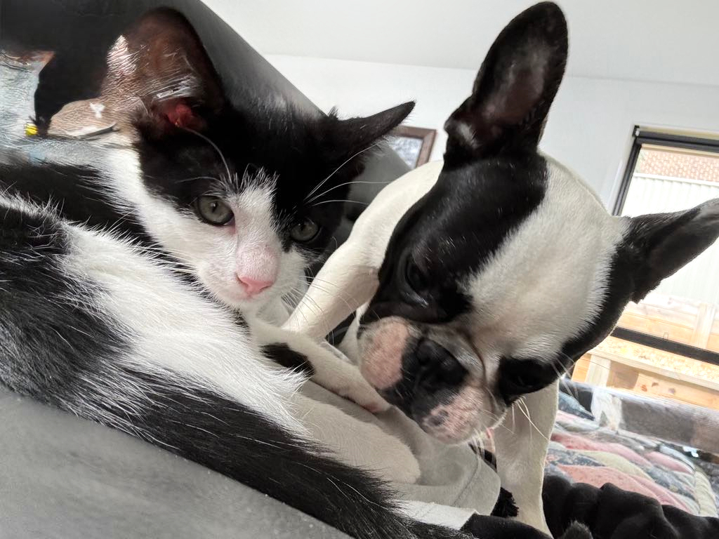 Hazel is the last of her litter and is looking for her forever home. She grew up roughhousing with her two sisters which are French bulldogs, you will see her running around throughout the day playing with these two and then finding somewhere quiet to have a sleep generally on my lap with the two dogs. (Adoring carer's comment.)