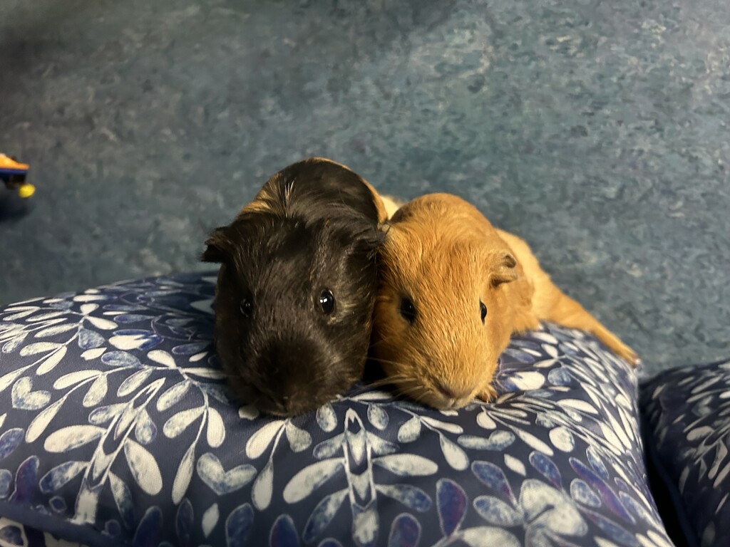 Muse is a sweet and gentle guinea pig who is closely bonded with her companion, Mae, and they must be adopted together. As a pair, they thrive in each other's company, and they will need a spacious enclosure with plenty of room to roam and explore. To keep them happy, they require chew toys, hides, and enrichment to keep them mentally stimulated and comfortable. A healthy diet consisting of fresh hay, vegetables, and pellets is essential for their well-being. If you're looking for a loving and well-matched pair of guinea pigs, Muse and Mae will make a delightful addition to your home!