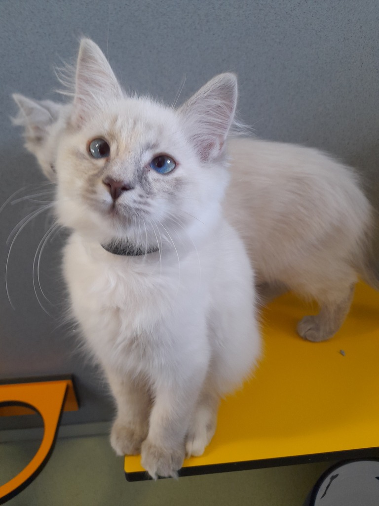 Hi there, I'm Cleo! I'm just a kitten, but boy, do I have a big personality. I'm always curious, sniffing out new adventures around every corner. I'm also super playful and energetic, so I'm always ready for a game of chase the feather or pounce on the jingle ball. But don't let my energy fool you, I love a good cuddle session too. I'll curl up in your lap and purr away. I've been told I'm quite funny too, I do love to make people smile. You know, I think we could be the best of friends. Adopt me and let's make some fun memories together!