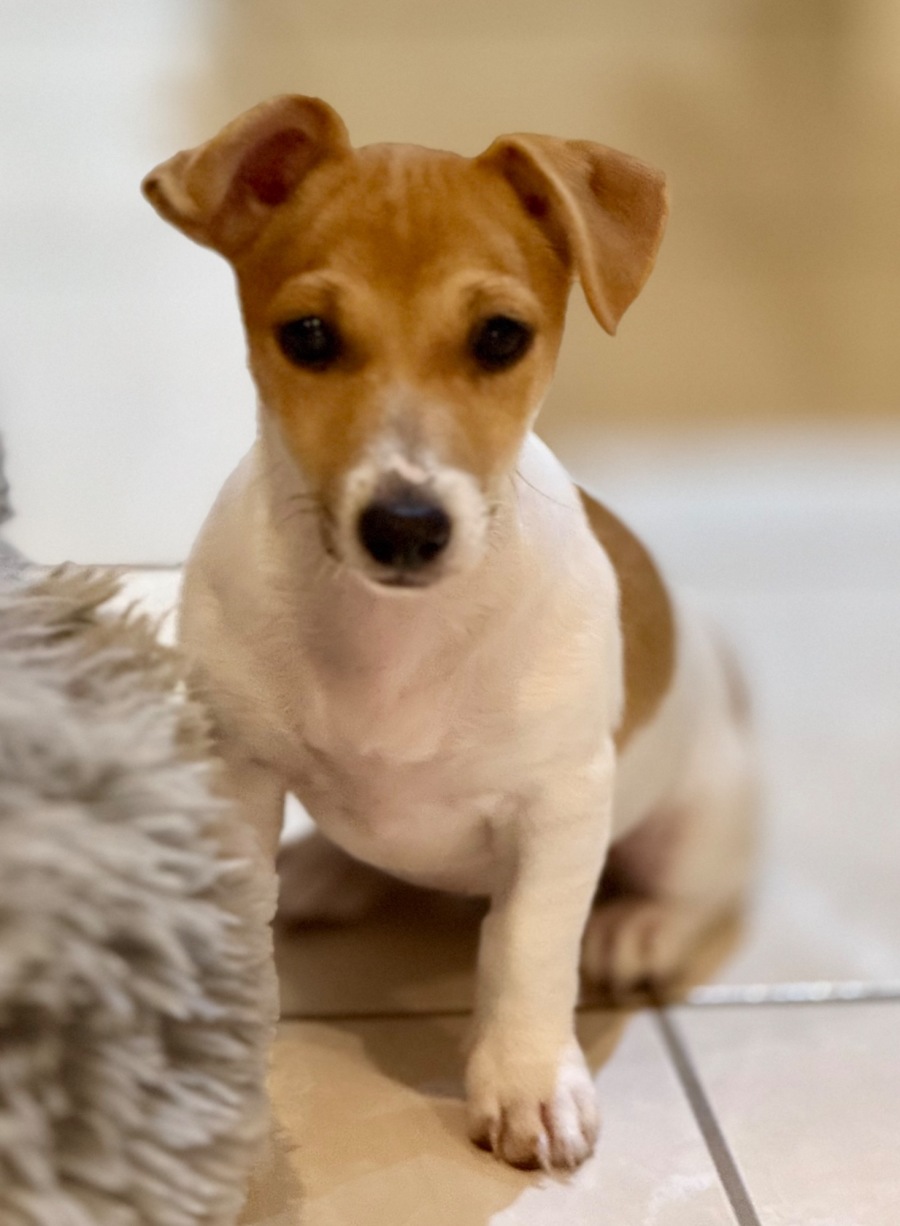 Meet Mila, the adorable Jack Russell Terrier puppy who's a bundle of playful energy and affection. This pint-sized dynamo embodies all the charming traits of her breed; she's lively, boisterous, and full of life. Mila thrives in an active environment where she can spend her days running, playing, and wrestling with her four-legged pals.