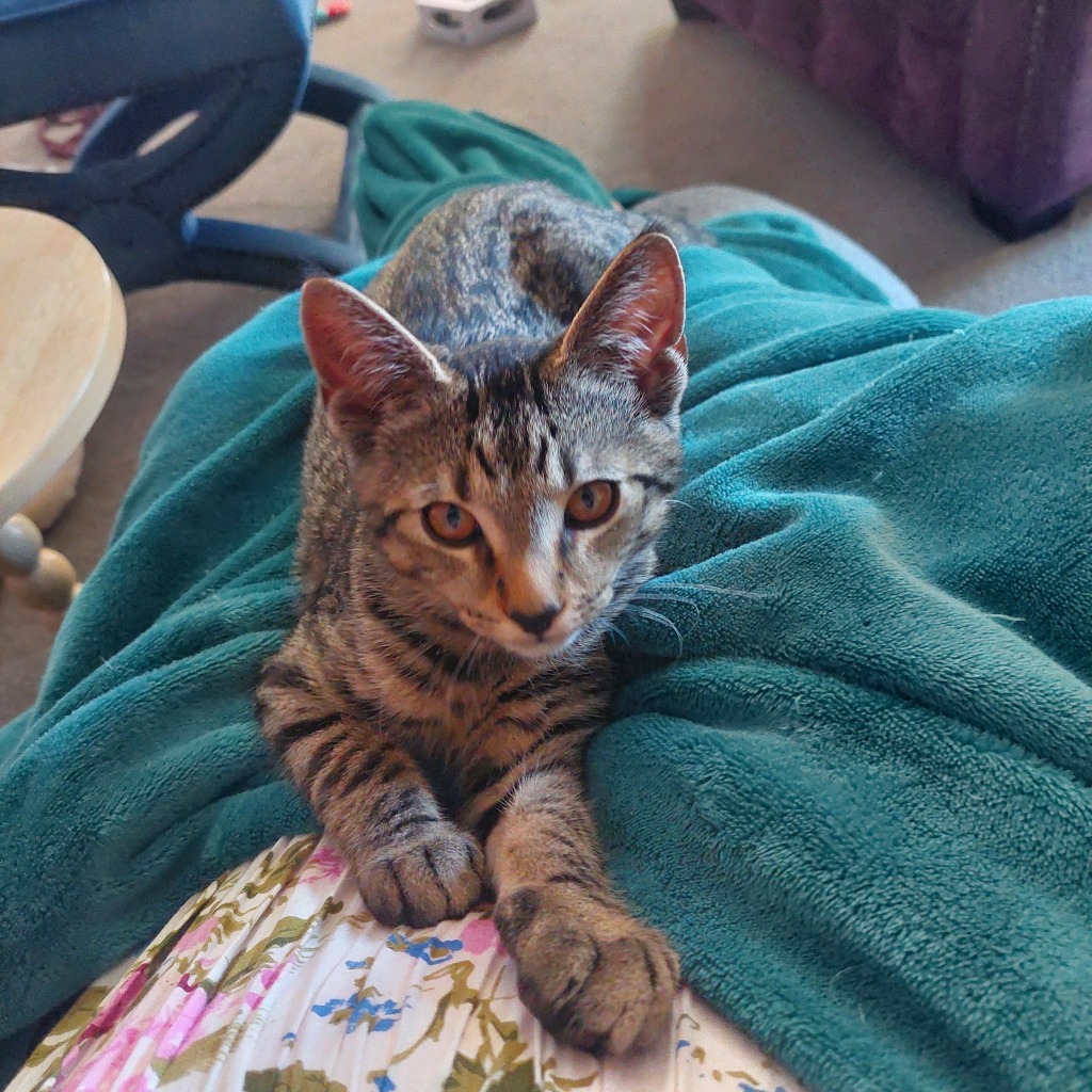 Cayenne arrived with his mum and siblings as strays that had never had human contact before, they were very 'spicy' and entered foster care to learn humans aren't so bad. Cayenne is a delightful kitty, very smoochy, purry, loves everything and everything. He really needs a kitten friend with the same energy, he is full of energy and loves to do zoomies 80% of the time so having another kitten friend is very important. Cayenne is good with other cats and dogs but they need to be good with young boisterous kittens who have no fear and jumps on them, he would be best without young children as he is so boisterous. Cayenne is awaiting to meet you at Pet Stock Invermay.