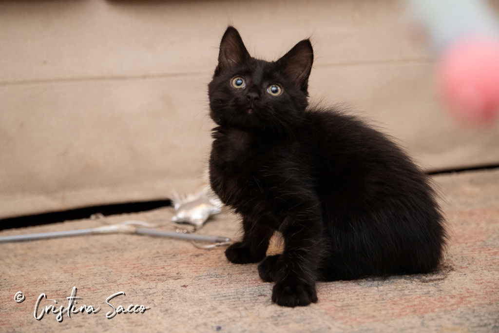 Little Bear is a super gentle and sweet little house panther with just the softest, snuggliest fur! Bear is curious and inquisitive but in his own very quiet and gentle way. He likes to play with his kitty toys but sometimes the boisterous wrestling of his litter mates is just a bit too rowdy for him.