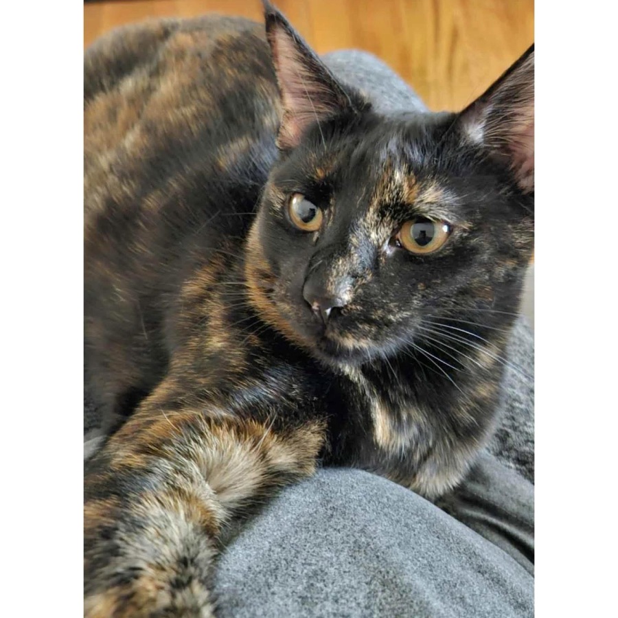 I like food and occasional treats. I love playing with toys and my hooman with the feather and bell toy, or chasing string! Once finished playing, I like laying on the couch with my hoomans.