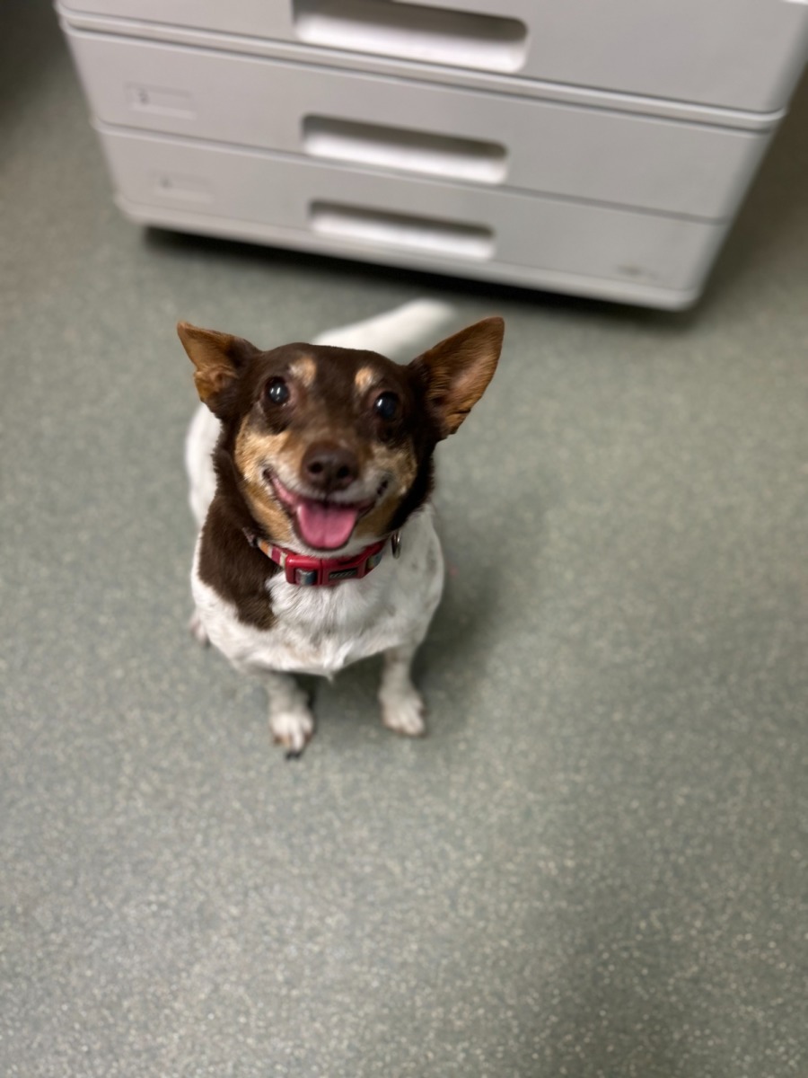 Meet Buggerluggs, an adorable fox terrier cross with a heart full of love. At nearly 9 years old, Buggerluggs has mastered the art of companionship and relaxation. This laid-back pup is a champion cuddler and loves nothing more than nestled alongside her favorite humans, especially on a cozy sofa.