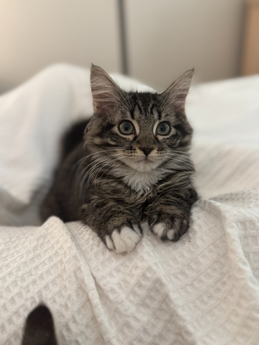 She would love to have another cat friend around to keep her entertained and share in her playful energy. Salsa has a big heart and would do best in a home where there’s plenty of time for play, cuddles, and a cozy spot to unwind together.
