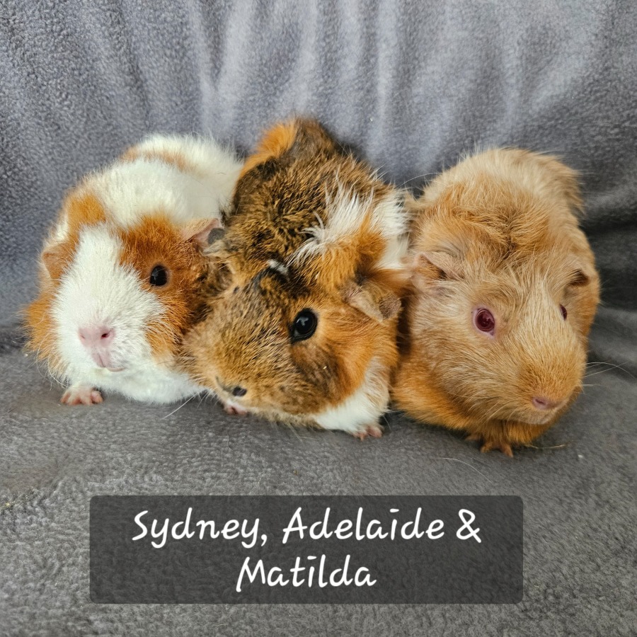 This lovely trio of Aussie ladies are looking for a furever home. Matilda, Sydney and Adelaide are all just over 2 years of age and are very bonded. They can be very vocal at dinner time and despite their build, quite often are caught pop corning in a fresh clean cage!