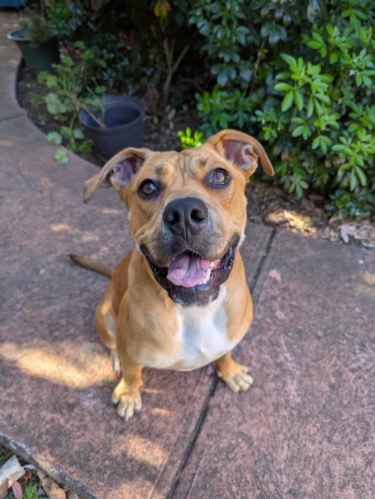 Boo is a young, energetic Staffordshire Bull Terrier mix with a heart full of love and a tail that never stops wagging! Super social and friendly, Boo adores meeting new people and gets along wonderfully with other dogs – he'd be thrilled to have a playful canine sibling to romp around with.