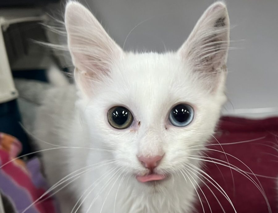 Sofa is a whirlwind of a kitten with a personality bigger than his tiny paws. His two differently colored eyes are a window into his split personality — 50% curious little tornado, 50% loving purr machine. This little escape artist has already mastered the art of Houdini-like escapes from his pod, leaving a trail of chaos and bewildered shelter staff in his wake.