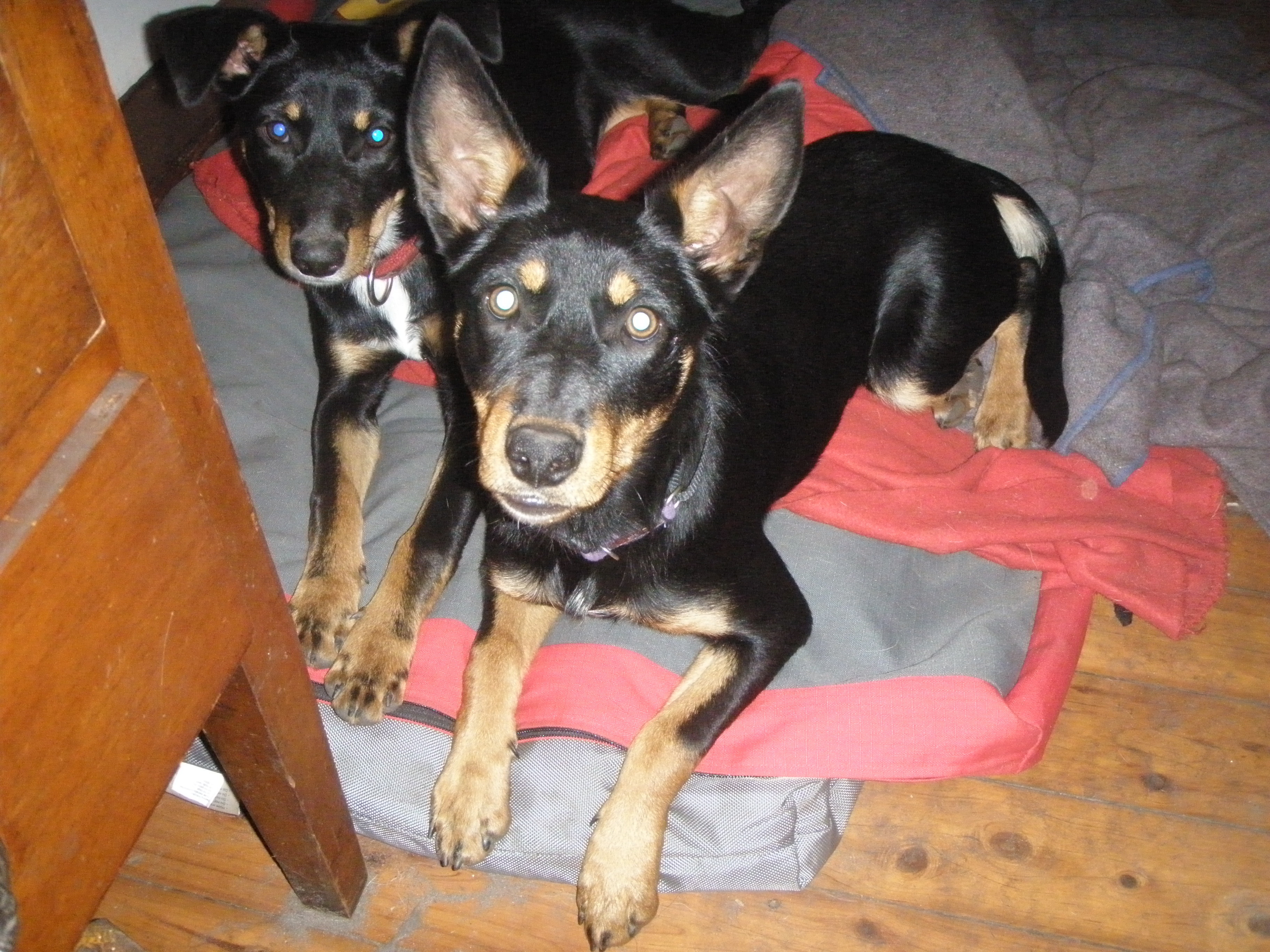 Jessie (at front of photo) is an intelligent and loving pup. She would suit a family that has time to play with her but that can also make time for cuddles and snuggles. Jessie is adorable. Everything she does - whether it be playing tug of war, tumbling around, or sleeping - is so cute. She likes to being with her owners but can cope being left alone in a yard with toys and a bone for work hours (6-7hrs), so long as she receives a daily walk/exercise. Jessie is toilet trained and will stand near the door when she needs to use the bathroom. Jessie is people and dog friendly. She loves her rope toys and enjoys munching on a good, meaty bone. Jessie will grow to be medium in size and she has an easy maintenance, shiny coat. Jessie is a quick learner and very obedient once taught. She is trained to sit, stay and come when called, although can still occasionally be distracted by her doggy housemates. She is lead trained and is quickly learning how to heel. Jessie is located in port macquarie nsw