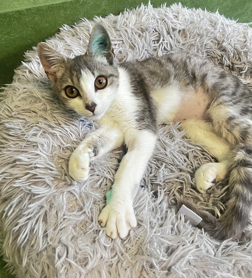 This is Pollyanna. She is a sweet little cat who is searching for her dream forever home filled with plenty of toys, attention and love! As she is still so young, she will need lots of mental and physical and stimulation to keep her happy. She would be suited to a home with another social feline friend, and older children.