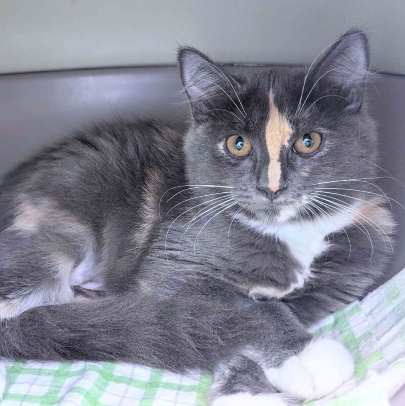 Hello! My name is Ruby, and I'm a 3-month-old female Domestic Short Hair kitten. I may be small, but I've got a big heart that's just waiting to love you! I'm as precious as the gem I'm named after, with a playful personality that will surely brighten up your day. I'm still a young kitten, so I'm full of energy and curiosity. I love exploring new spaces and playing with my favorite toys - especially those with feathers and bells. I'm also a fan of cuddle time and will happily curl up in your lap for a cozy nap. Being young, I'm also very adaptable. With a little patience and love, I'll quickly feel at home in my new surroundings. So if you're looking for a sweet, playful, and loving addition to your family, then I'm your girl! I can't wait to meet you and start our purrfect life together!