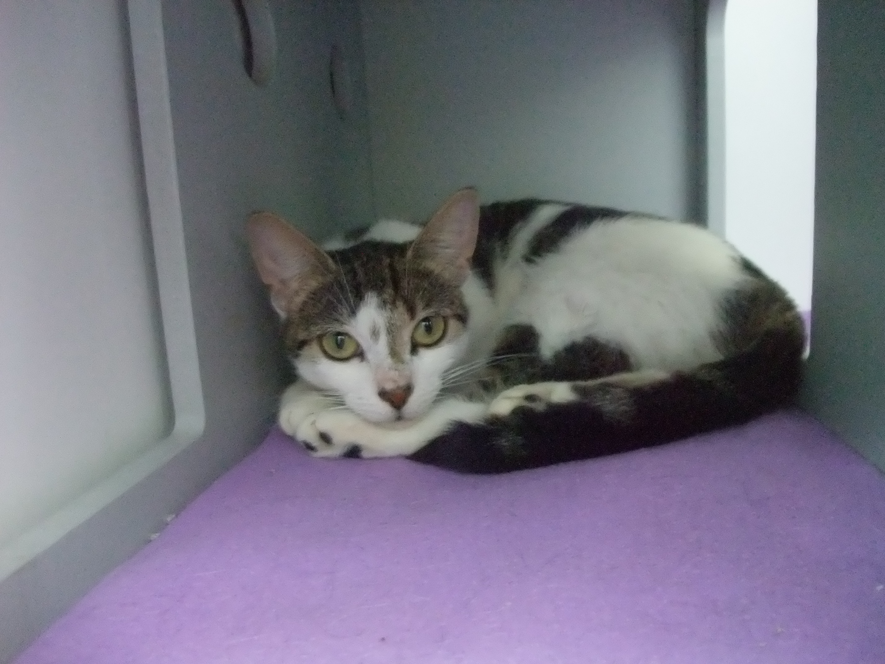 Hi i'm pepsi and i need a new forever home, as my owner could no longer look after me. I am a beautiful shy little lady who loves to get lots of back scratches and belly rubs. I don't mind being around other cats but i would prefer a quieter home environment. Please come into the cattery to meet me today!