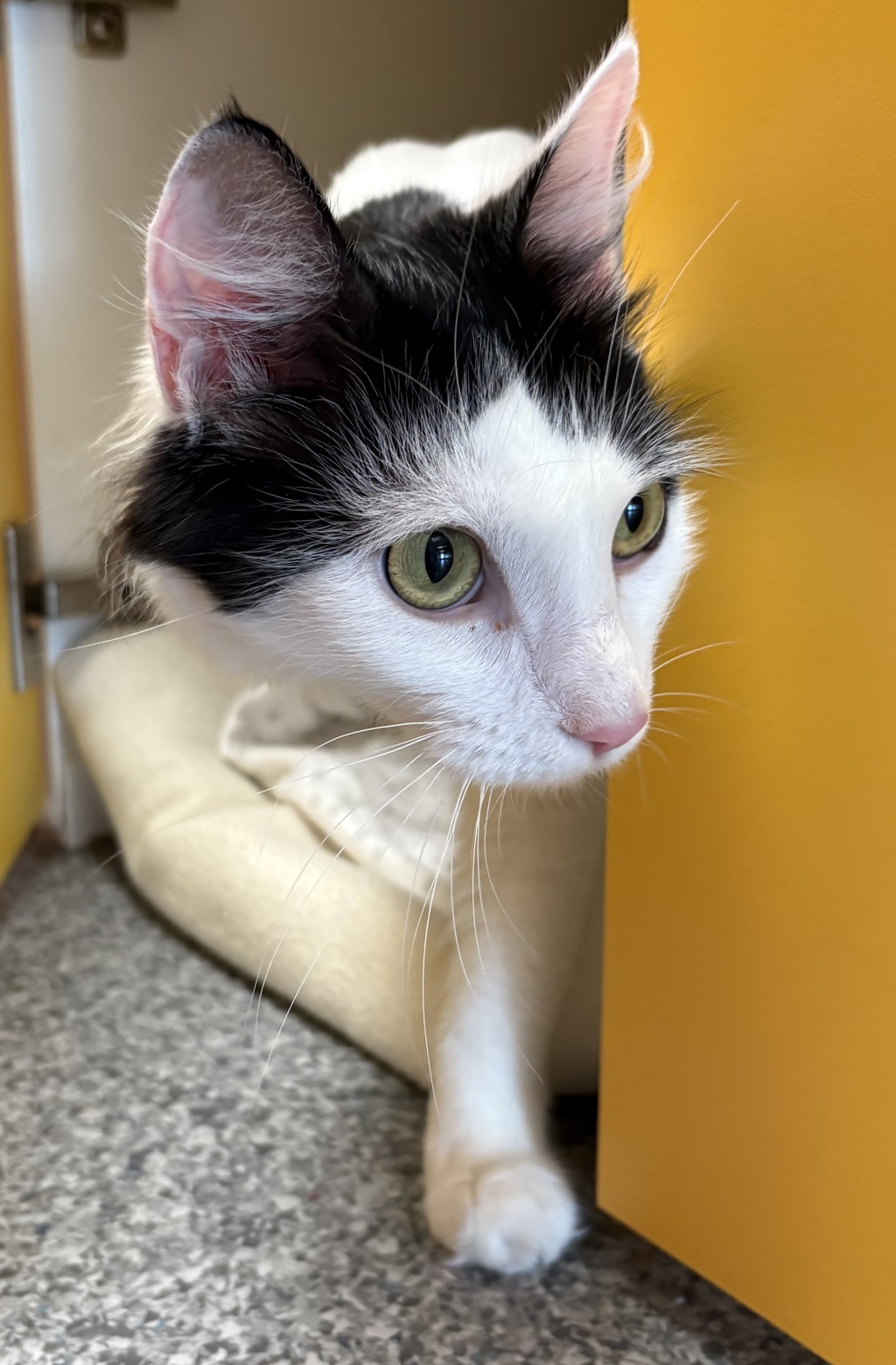 She's looking for a home where she can chill out with her family and get some play time in too. While she's at home getting lots of pats shell also need regular brushing to keep her fluffy coat looking beautiful. She has a pretty pink nose so needs to be an inside only cat to keep her safe from the harsh sun.