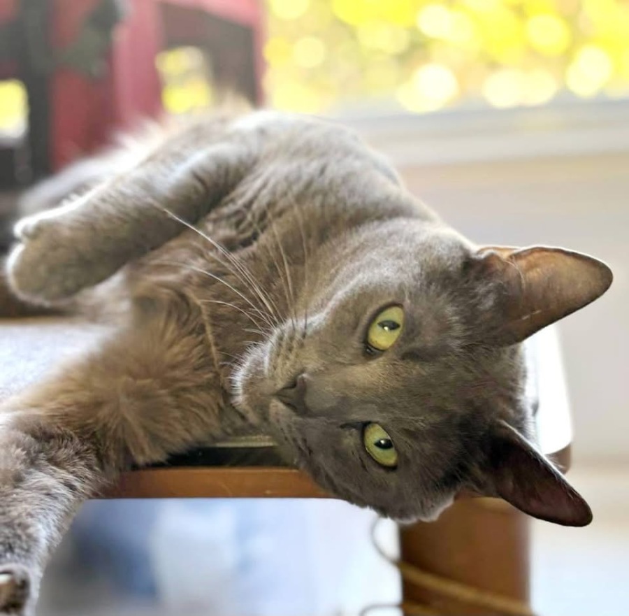 Harlow loves sitting in the window sill watching what is going on out in the world. She isn’t good with dogs and is hit and miss with other cats (better with male cats than females).