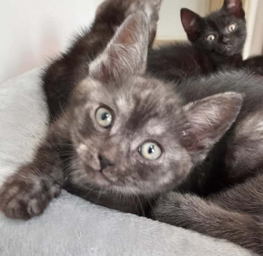 Trixie is stunning. She is black tabby on top and silver tabby on her under side and a silver tabby face. She is playful, adventurous and cuddly. She will need someone around most of the time to start with or a feline friend.