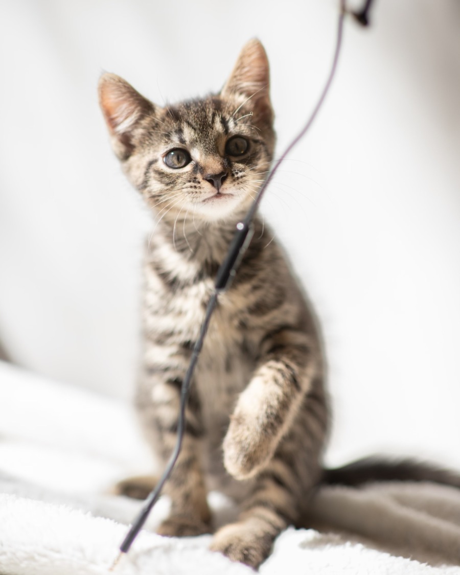 Our adorable little guy boasts an ideal blend of curiosity, confidence, and serenity, making him the purrfect addition to any home. Kip's adventures often include amusing games with pompoms, which he comically carries around the house, adding a touch of playful mystery to his personality.
