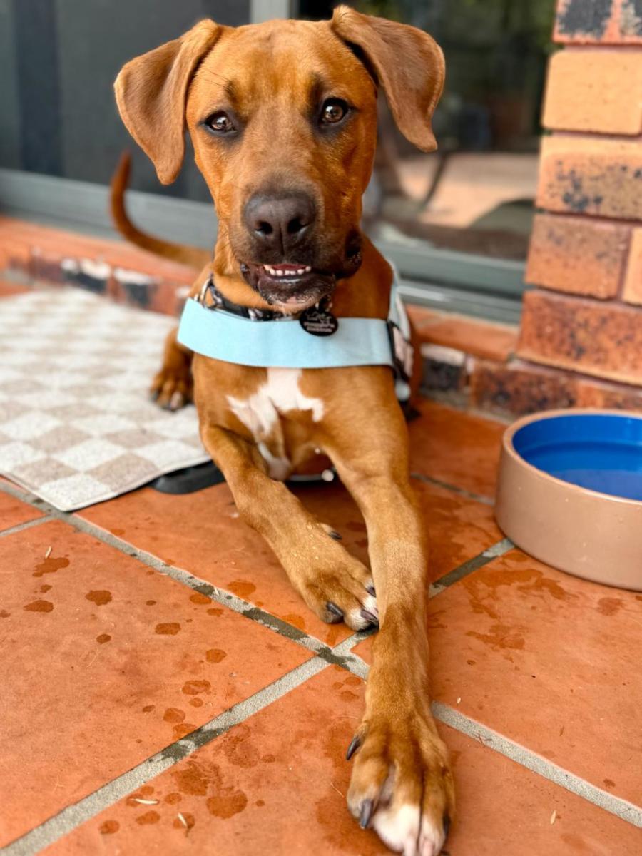 But don’t be fooled by his goofy charm—Knuckles is a smart cookie. In just a few short weeks, he’s already picking up general obedience, leash manners, and is well on his way with toilet training. He’s eager to please, quick to learn, and always down for a snack-based negotiation.