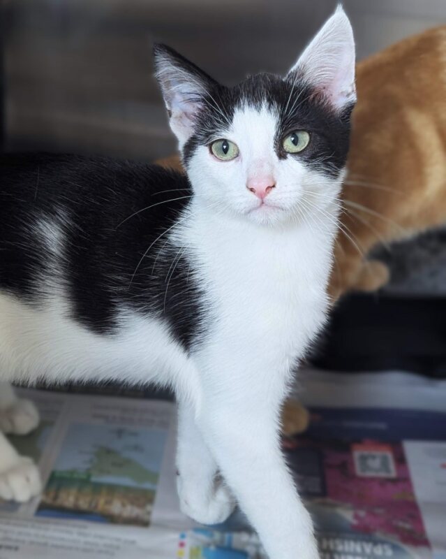 I'm a 3-month-old male Domestic Short Hair kitten who's ready to bounce into your life. Don't let my age fool you, I've got plenty of personality packed into my tiny frame. I'm playful, curious, and I love to explore my surroundings.