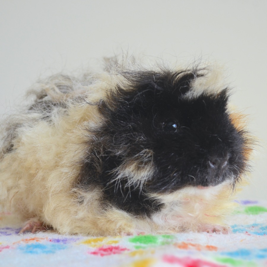 Miss Fumbles is a gorgeous texel girl, who is coming along really well with her socialisation. She is the first in her group to race over and see what you're putting in the food bowl, and is confident with other guinea pigs. Miss Fumbles has been a wonderful auntie, helping babysit for two of her friends that gave birth. She is just a sweet girl, looking for a loving home that will give her hair a trim every now and then.