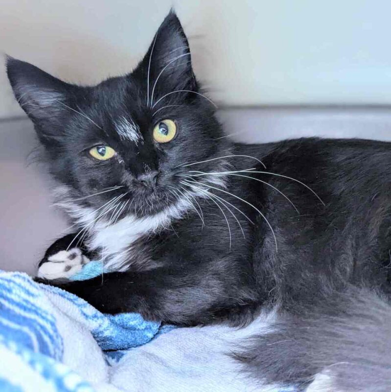 Hello, human! I'm Dahlia, a 3-month-old Domestic Medium Hair kitten, and I'm looking for a forever home. I'm a female ball of fluff who is just the right mix of playful and chilled. I can be quite adventurous, exploring every nook and cranny of the house, but I also love snuggling in a warm lap. Though I'm still a kitten, I don't have any known issues with children, so I'm sure I can become a special part of any family. I'm not just a pretty face, I promise, I've got a whole lot of love to give. So, if you're looking for a fluffy, loving, and playful companion, I'm your girl. Can't wait to meet you soon! Love, Dahlia.