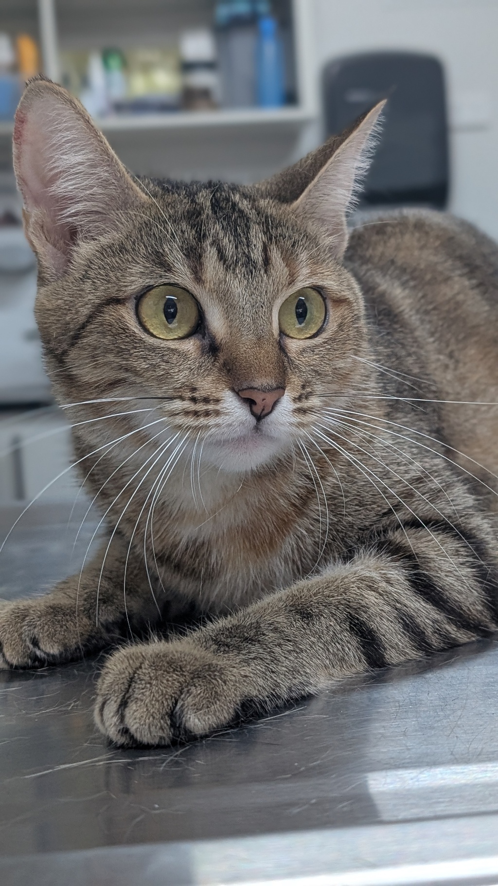 I am Smartie like the sweet chocolate treat because I am just a big sweetheart. I come across as really shy, and you will find me hiding in my cat box most of the day. But if you are quiet and patient I will come out for some smooches. I just need a kind and gentle home for me to come out of my shell. Will you give me a chance?