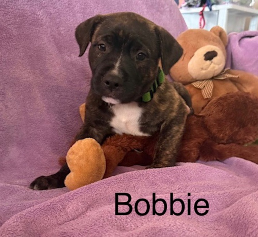 Bobbie is a happy friendly little pup. He is full of joyful puppy energy but also loves a cuddle on the lounge with his humans. Bobbie has so much fun playing with his litter mates and enjoys his toys as well. He would love to find a home with a nice sized yard to play in and chase balls. He would also be happiest with regular walks and play dates at the dog park or beach. Bobbie would love to find a home with humans who allow him inside and include him in family activities.