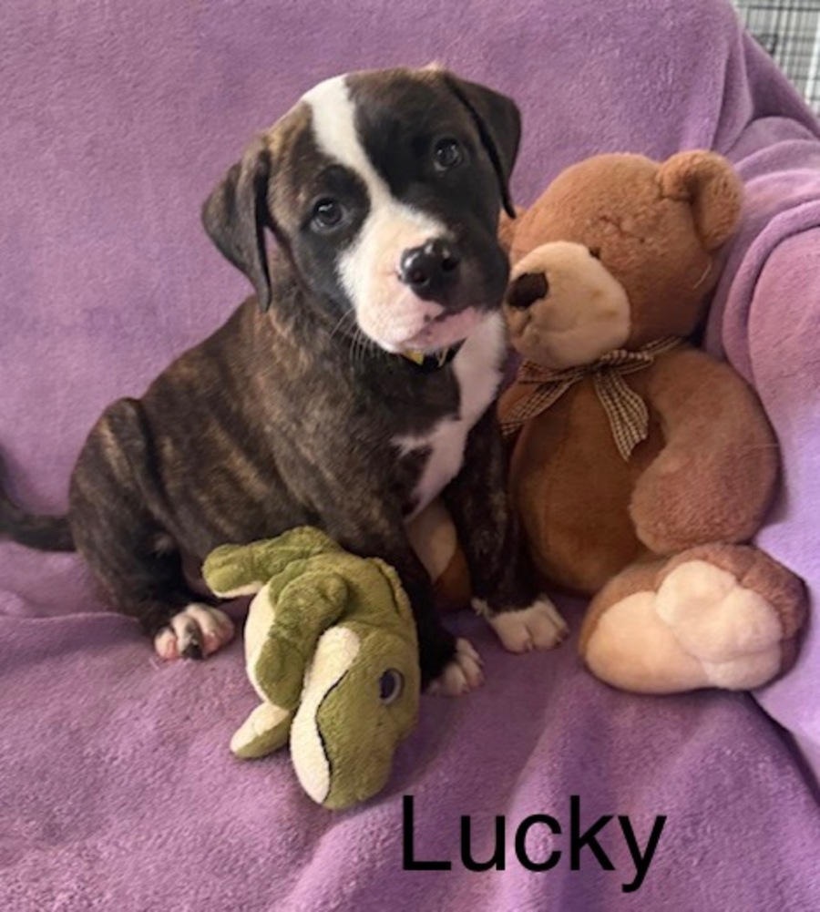 Lucky is a happy friendly little pup. He is full of joyful puppy energy but also loves a cuddle on the lounge with his humans. Lucky has so much fun playing with his litter mates and enjoys his toys as well. He would love to find a home with a nice sized yard to play in and chase balls. He would also be happiest with regular walks and play dates at the dog park or beach. Lucky would love to find a home with humans who allow him inside and include him in family activities.