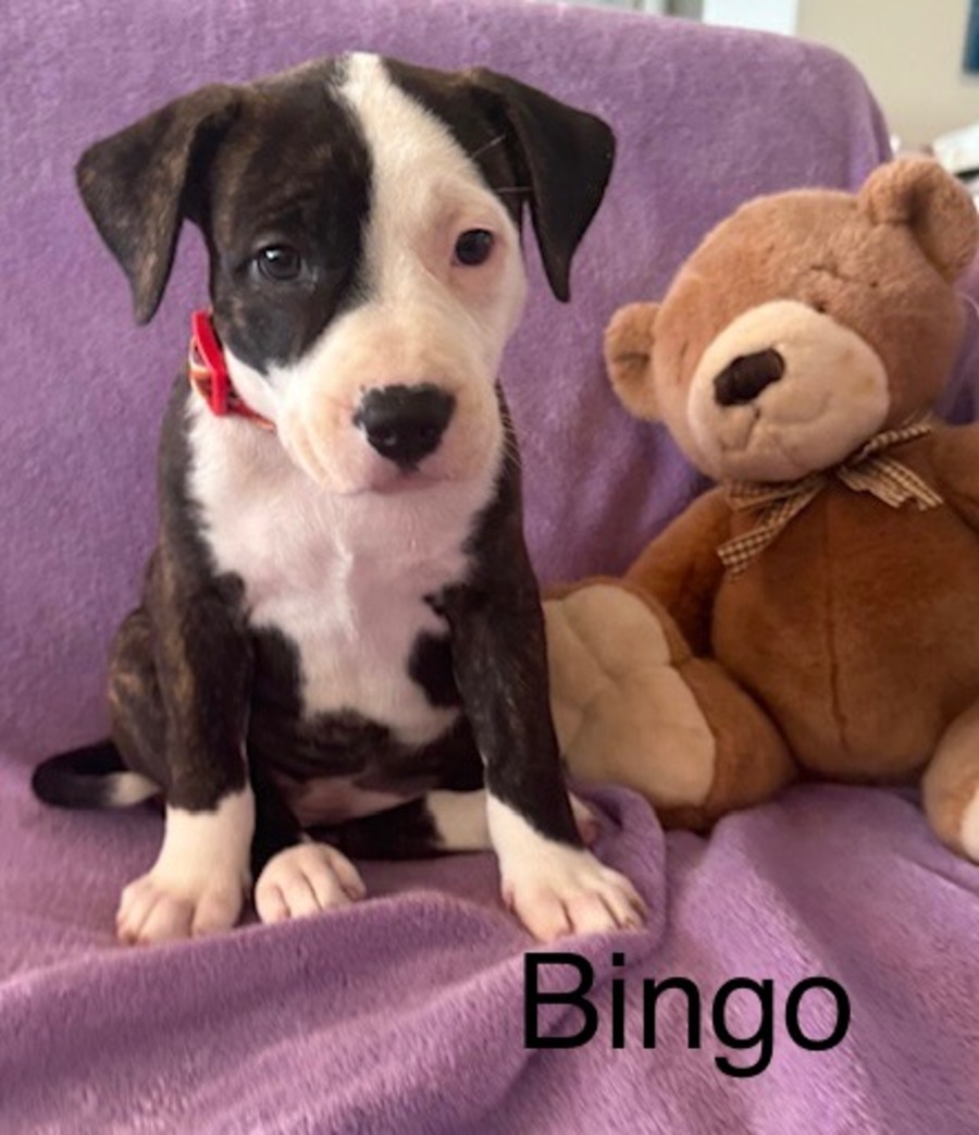 Bingo is a happy friendly little pup. She is full of joyful puppy energy but also loves a cuddle on the lounge with her humans. Bingo has so much fun playing with her litter mates and enjoys her toys as well. She would love to find a home with a nice sized yard to play in and chase balls. She would also be happiest with regular walks and play dates at the dog park or beach. Bingo would love to find a home with humans who allow her inside and include her in family activities.