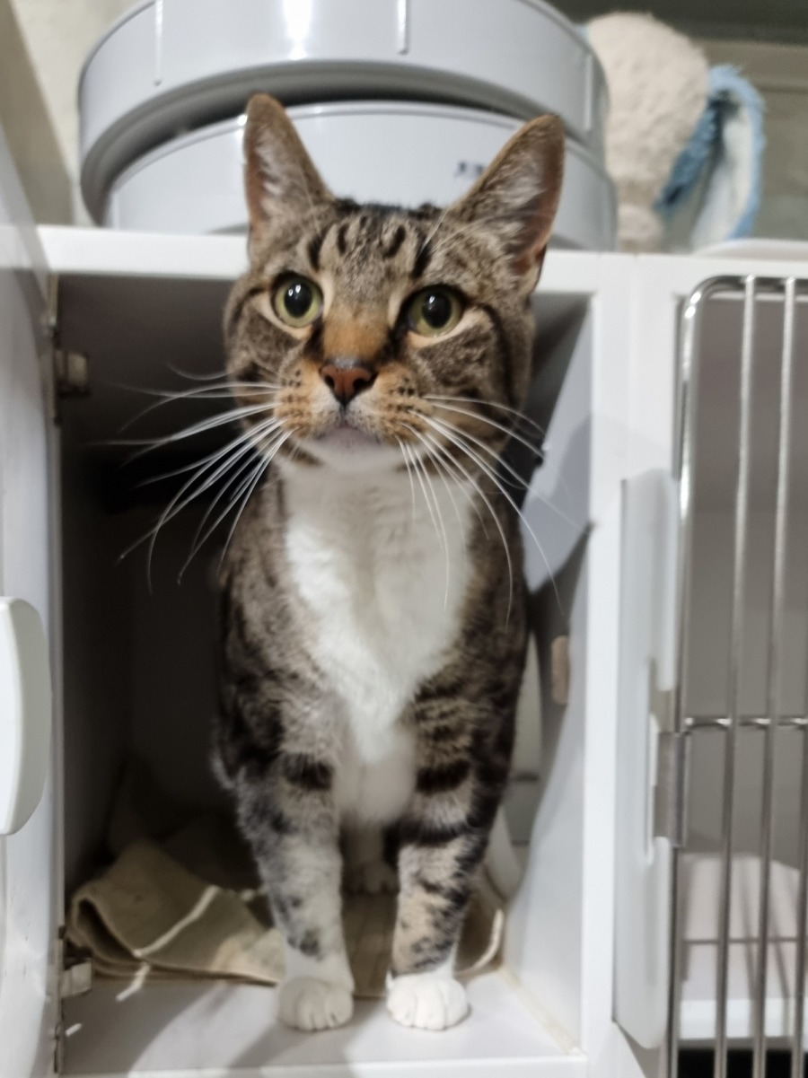 I am happy to get lots of pats and affection but also don't mind spending some time by myself. I would be a great cat for someone who just wants some company.
