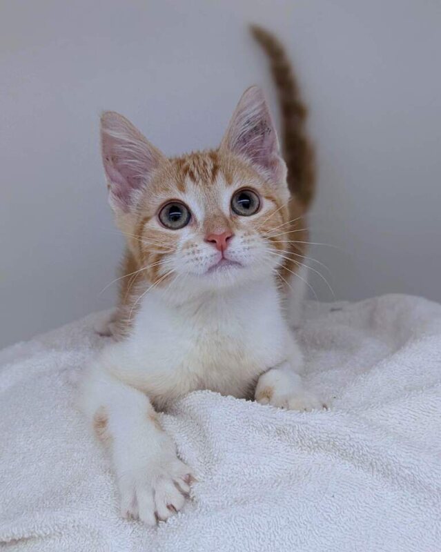 Hello there, I'm Waffle! I'm a sweet little female kitten of 2 months, with a beautiful coat. I'm just a tiny bundle of joy and I can't wait to add some sweetness to your life! I love to play, and my curious nature keeps me exploring all day. I'm great with other pets and I've been told I have a purr that could soothe even the grumpiest of hearts.