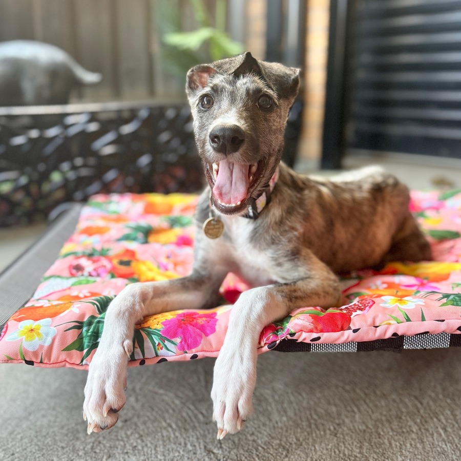 Although Cora is still a young puppy, she has a gentle and loving nature that makes her a wonderful companion. She’s good with other dogs and could potentially live in a home with cats as long as they are introduced slowly, keeping in mind that sighthounds do have naturally high prey drive. Cora would also do okay in a family with young children who can engage with her in a positive and kind way.
