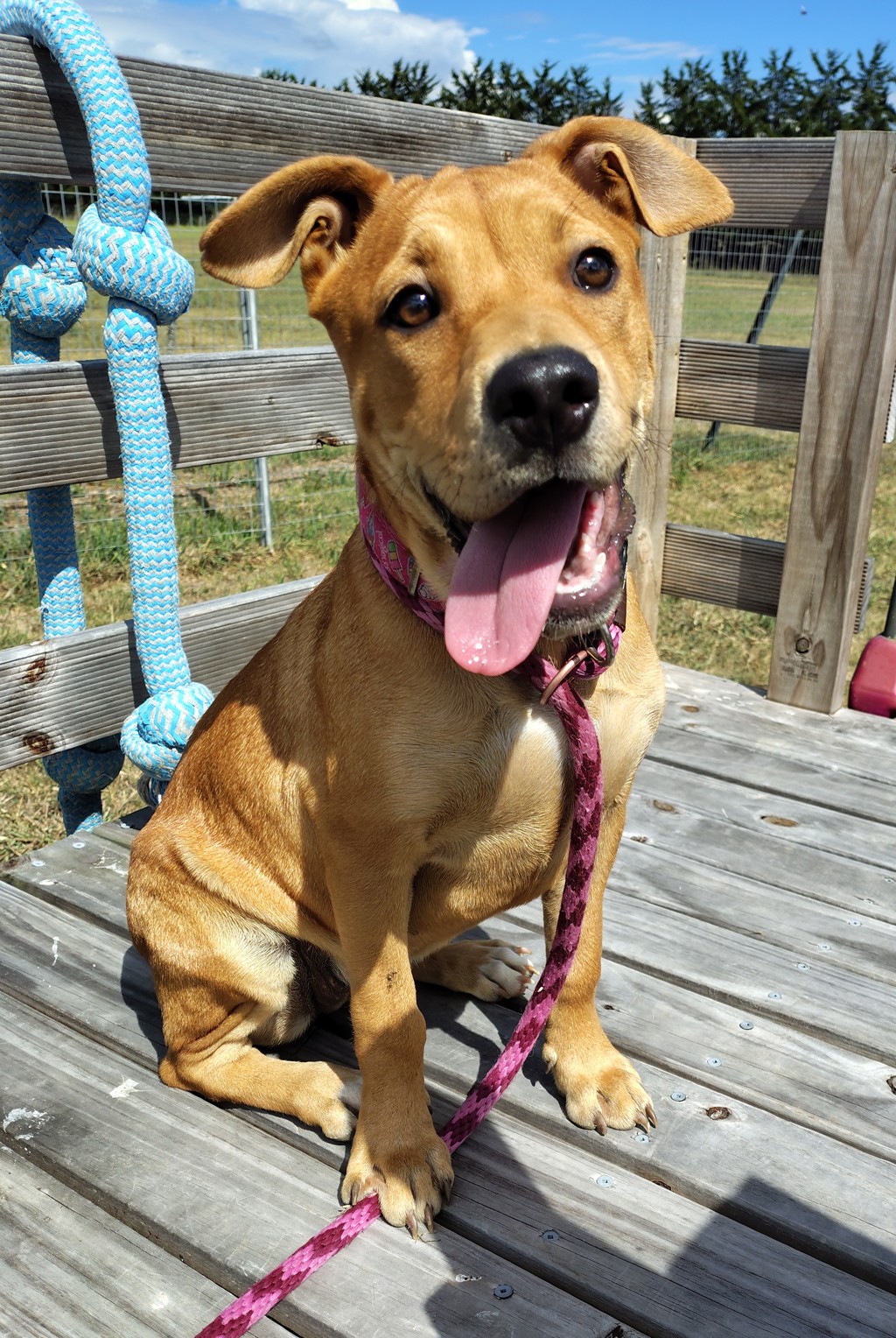 Matcha is the kind of puppy that will fill your days with joy, energy, and affection! At just 6 months old, this sweet Staffy mix is a ball of enthusiasm, always ready for an adventure and full of love to give.