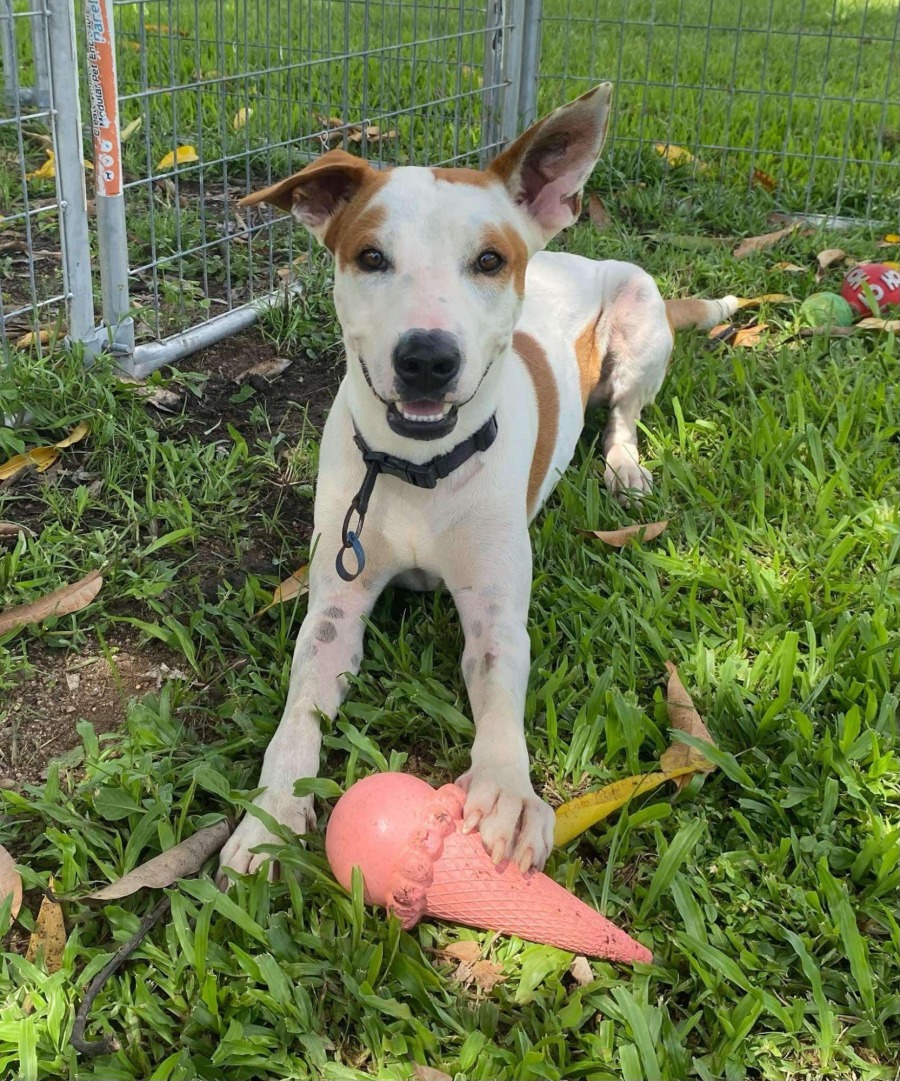 This gentle young fella has settled into his foster home beautifully, proving himself to be a happy go lucky doggo shadow, and perfect company for trips to bunnings, parks, in the car, and social events. Mate has responded well to other dogs when out and about, walks nicely on a lead, and is toilet trained. An indoor / outdoor dog, Mate enjoys gentle human company, and absolutely loves fetching and bringing back a ball for his humans as well as showing off some other neat tricks and talents.