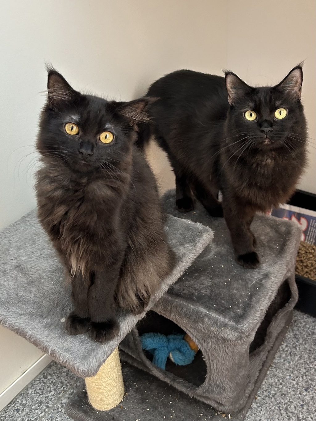 Daisy and her son Pip are closely bonded and need to go home together. They are both sweet and affectionate and are very close. They came in with a group of 10 cats and rely heavily on each other. Pip is the more confident one of the two, Daisy tends to stay behind her baby. As long as she's with Pip, she'll be OK. They would like a home with no young kids, although teenagers should be fine. Please come in if you feel like it, 11.30 to 3.30 seven days a week, and give them their second chance at life.
