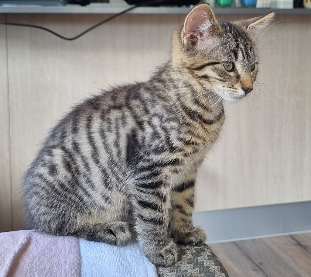 Chutney is a real love bug who loves to run, climb and chase things but will always drop back in every now and then just to check on you and for a quick pat! He is nearly identical to his brother, except he has a dark line around his neck that looks like a necklace! Chutney is great with other cats, dogs and kids, the purrfect cat for any home. Come and meet him at our Longford Centre.