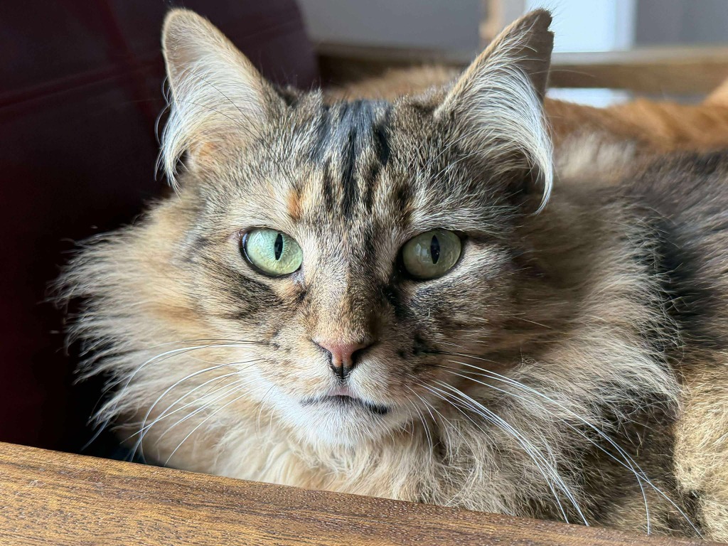 Elphie is a shy little ball of soft, intensely coloured fur, who likes to keep a watchful eye on the coming and going of other people and or pets from her favourite vantage points, but she will let her playful side out when there is something to chase.