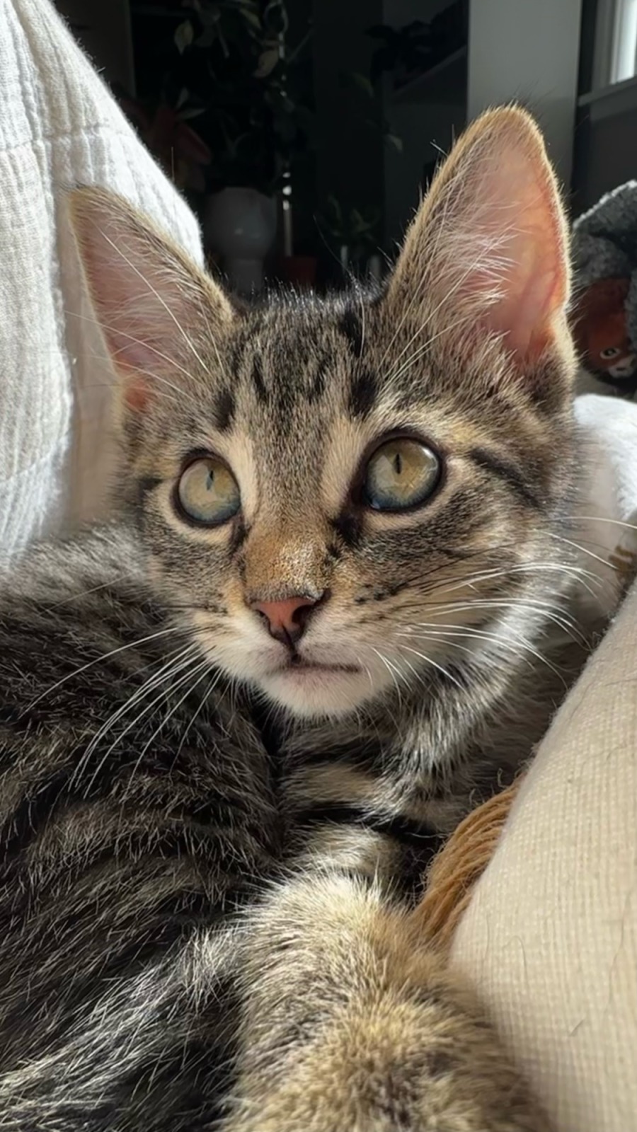 Meet Carrot — the ultimate playful, snuggly, and social little guy! He’s bursting with energy, loves to wrestle with other pets, and will happily follow you (or your cat or dog) around all day. He warms up to new people quickly and purrs the second you pick him up. Carrot would thrive in a home with other friendly pets or someone who’s home most of the time — he’s a clingy cuddlebug who loves company. He’s still in his playful kitten phase and may nibble on fingers, so a home with kids who understand kitten antics would be ideal. Ready for a curious, sweet, and loving shadow? Carrot’s your guy!