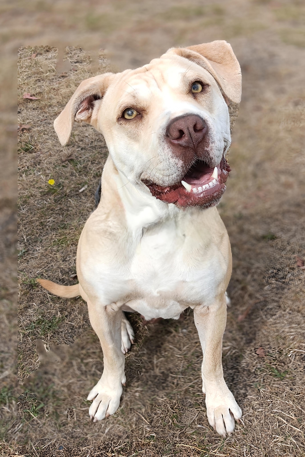 Meet Megs, a beautiful 3-year-old female Bulldog mix with a stunning cream and white coat that's as soft as a cloud. This loving bundle of joy is bursting with personality and energy, especially in short, playful bursts that will surely keep you entertained. Megs thrives on attention and affection, always eager to please her new owner. After spending her life within her own family of dogs, she is ready to find her forever home where she can shower you with love and companionship.