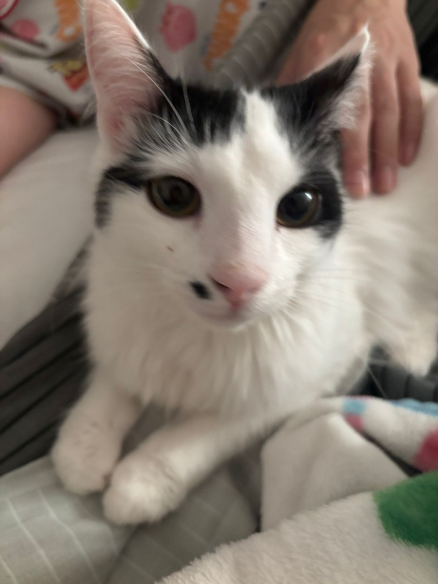 She loves chasing after feathers, batting at dangling strings, and pouncing on unsuspecting toys. When she’s not zooming around, she enjoys curling up in a cozy spot, often stretching out like a tiny queen.