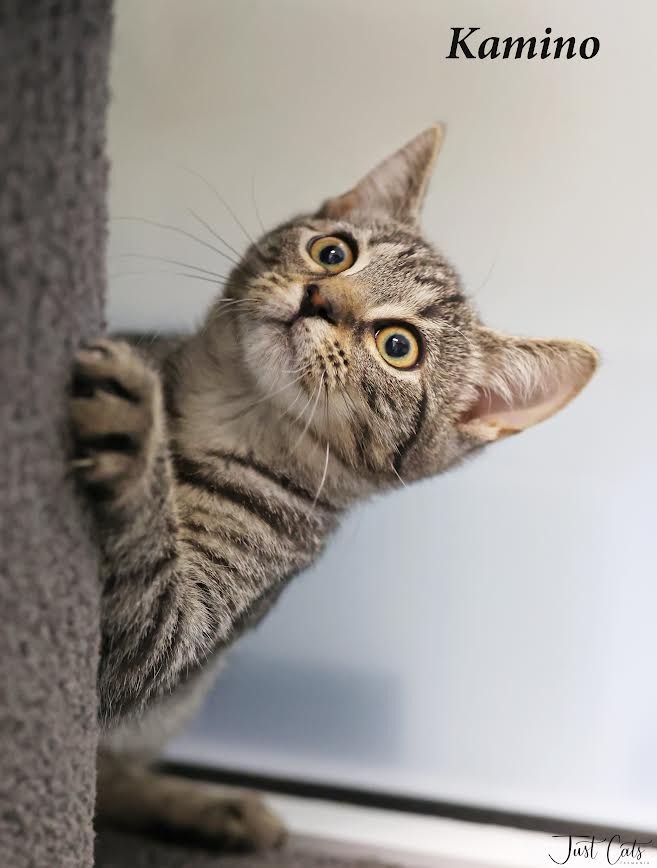 Kamino arrived alongside her sibling as strays who were born on the streets to a feral mum. Kamino is a stunning kitten who knows how pretty she is! She loves to spread out to sun bake while perched up high, but she will also play rough with her brothers and chase balls around the room. She prefers to sit next to you than on your lap but loves to be stroked on the back of the head and ears, producing a beautiful load purr. Kamino is great with other cats, dogs and kids. Come and meet her at our Burnie Centre.